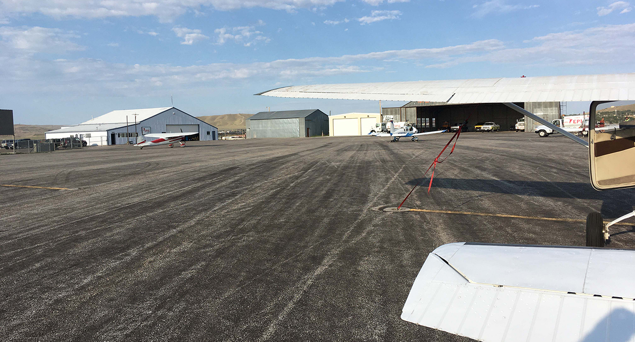 When we got to the airport from the hotel Tuesday morning, the density altitude was back down to nearly the airport elevation of a little over 6,800’. Landing yesterday was on the crosswind runway of 4,300’ but taking off today was right into the wind down the 7,000’ runway. There was no drama other than a little leaning of the mixture to get full power.